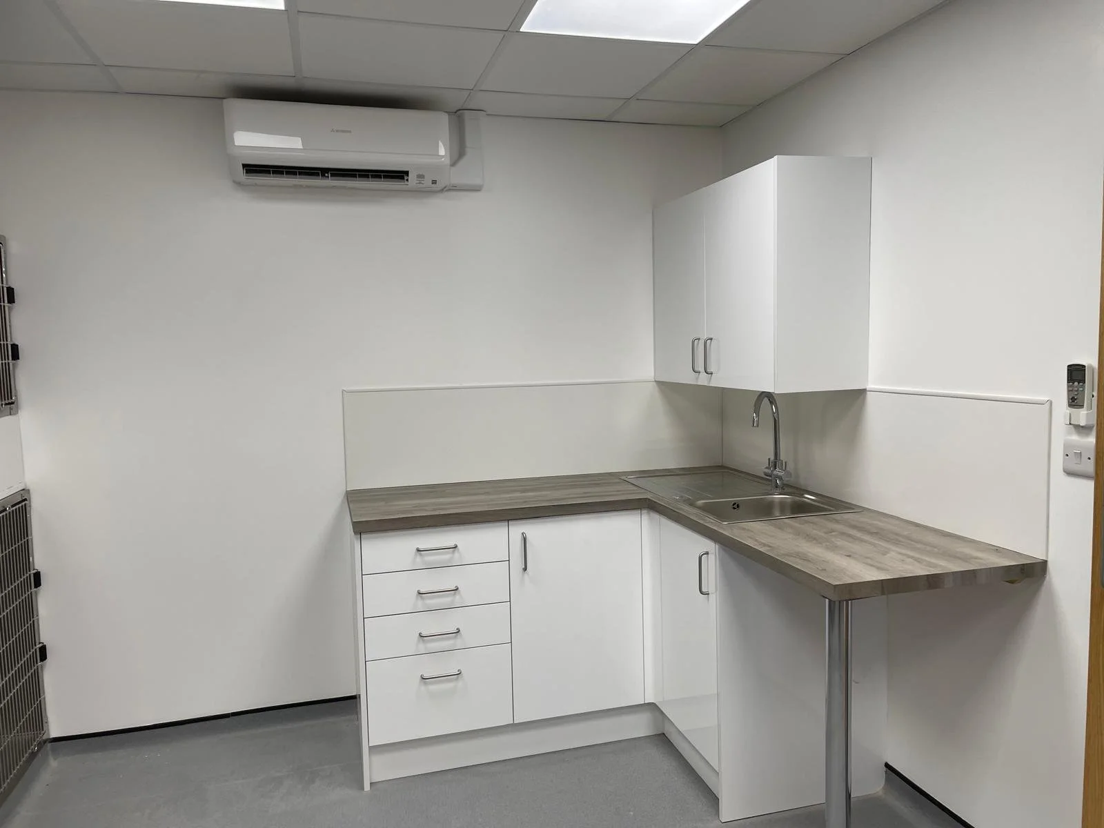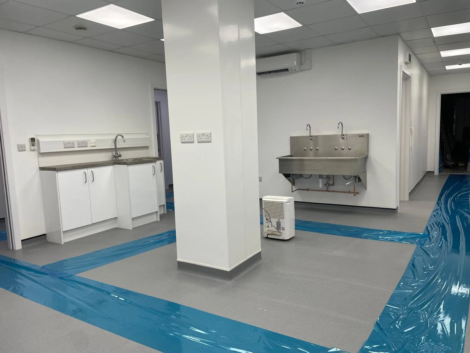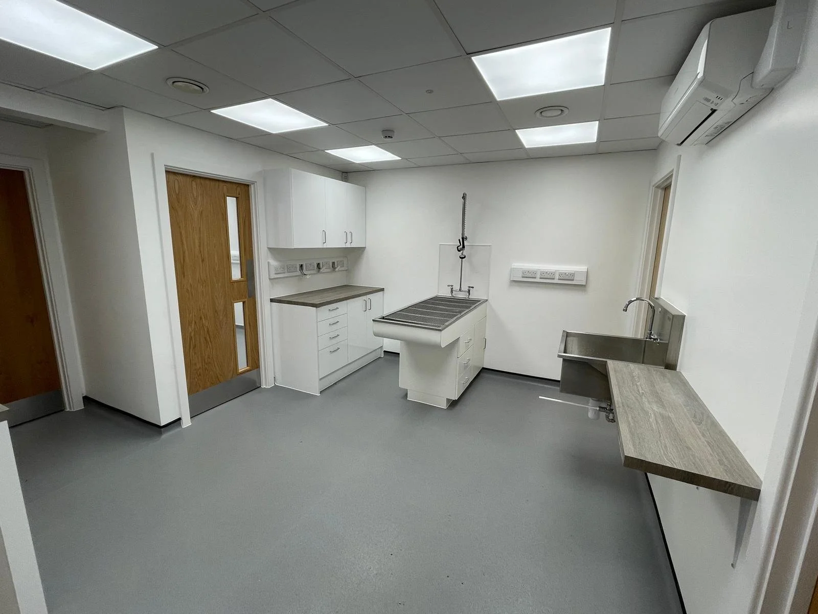 Once the building was stabilised, we undertook a complete internal fit-out, carefully designing and constructing the space to meet the specific requirements of the veterinary practice. This included the creation of clinical areas, consultation rooms, and welcoming spaces for clients, all delivered with a focus on practicality, hygiene, and a high-quality finish.
