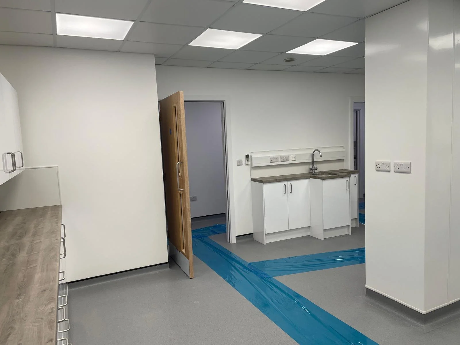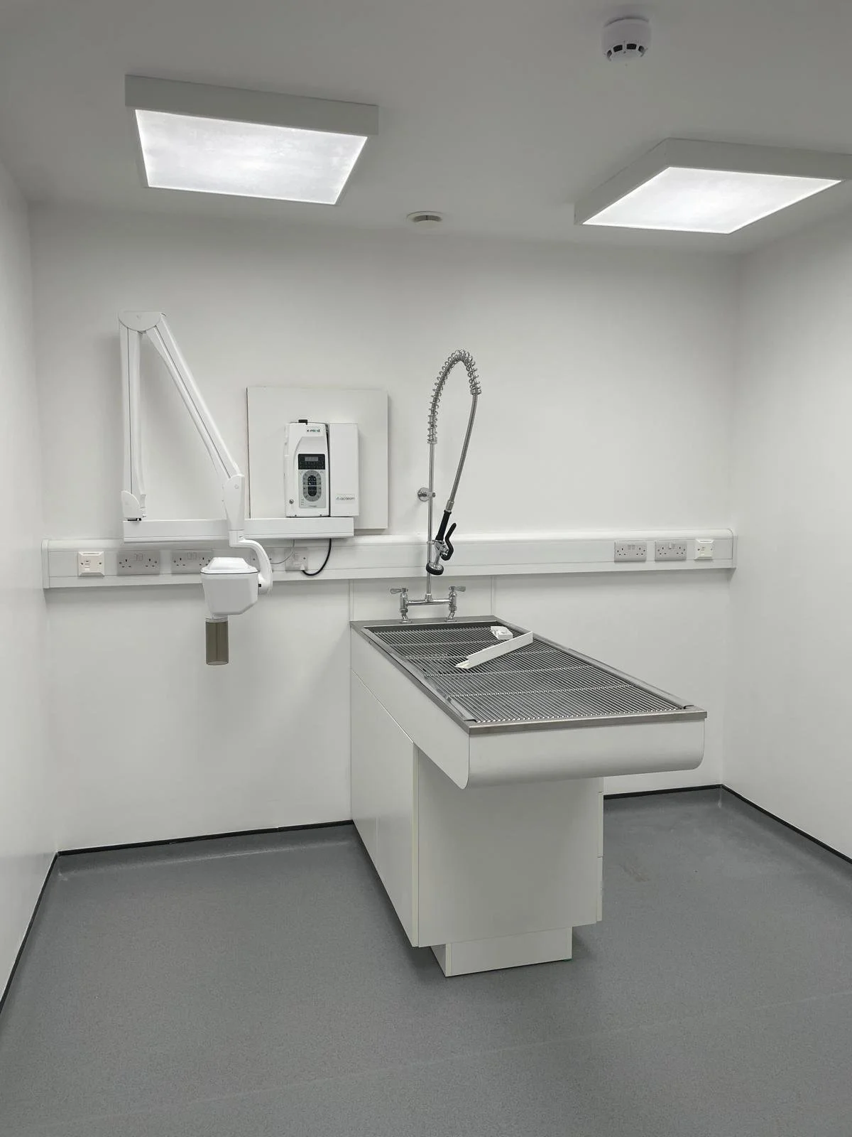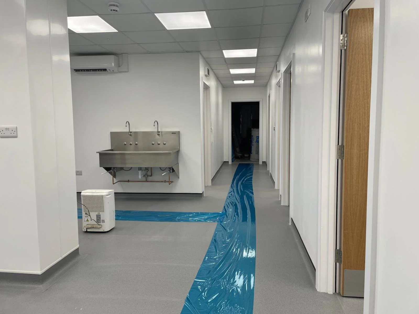 Once the building was stabilised, we undertook a complete internal fit-out, carefully designing and constructing the space to meet the specific requirements of the veterinary practice. This included the creation of clinical areas, consultation rooms, and welcoming spaces for clients, all delivered with a focus on practicality, hygiene, and a high-quality finish.
