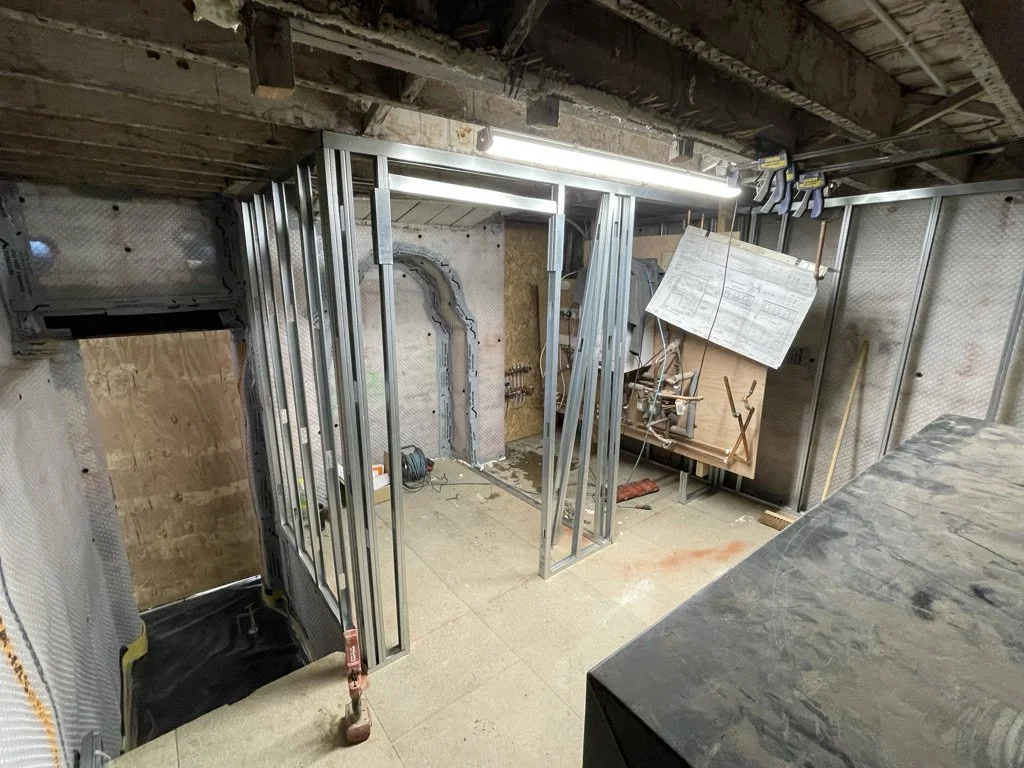 This project involved the full conversion of a basement into a high-quality living space, incorporating a utility room, kitchen, and WC. To achieve this, the existing structure was carefully underpinned to increase head height, while a series of structural steel elements were installed to open up the layout and create a more spacious, functional environment. An extension was also added to expand the overall footprint.